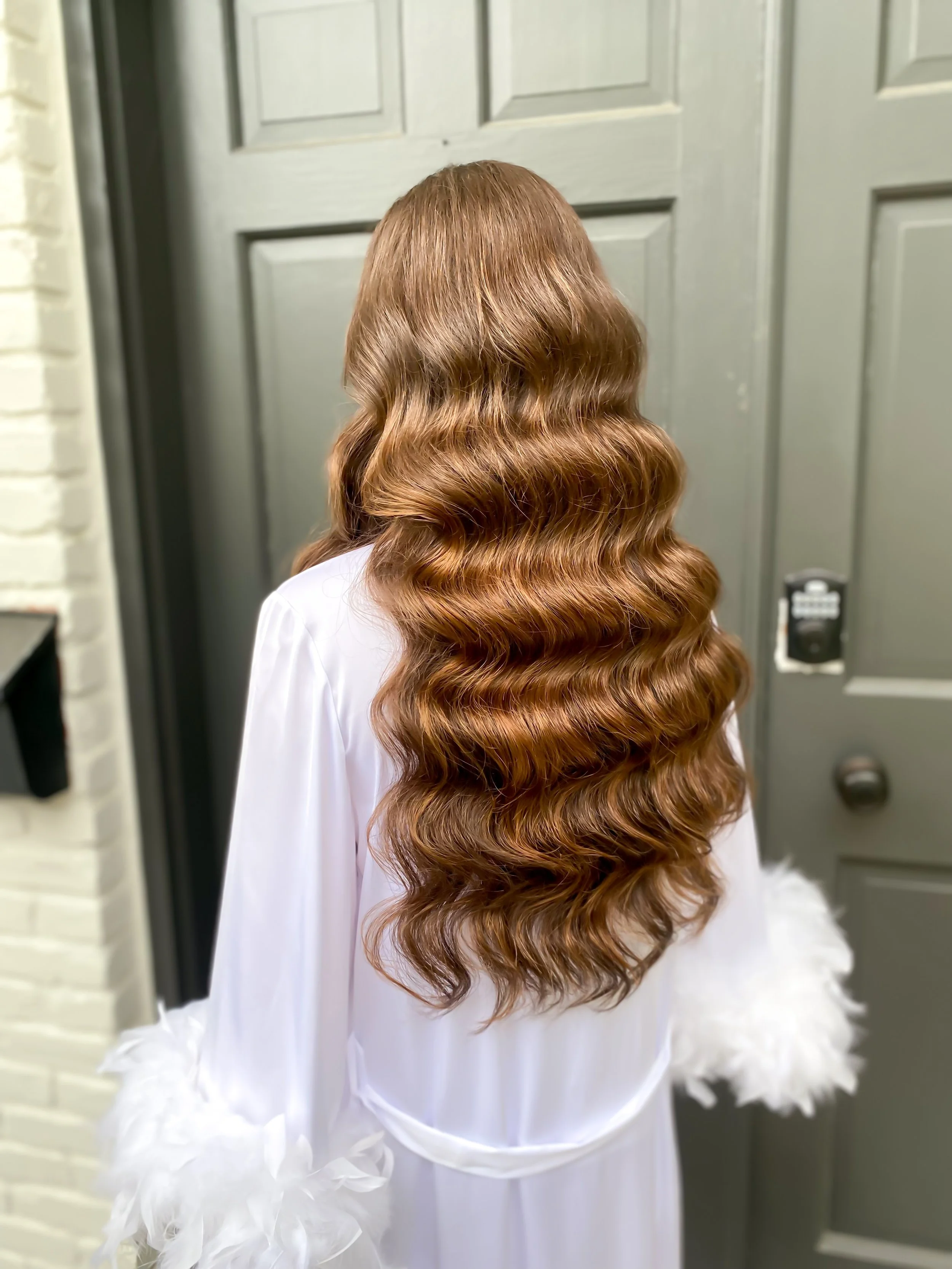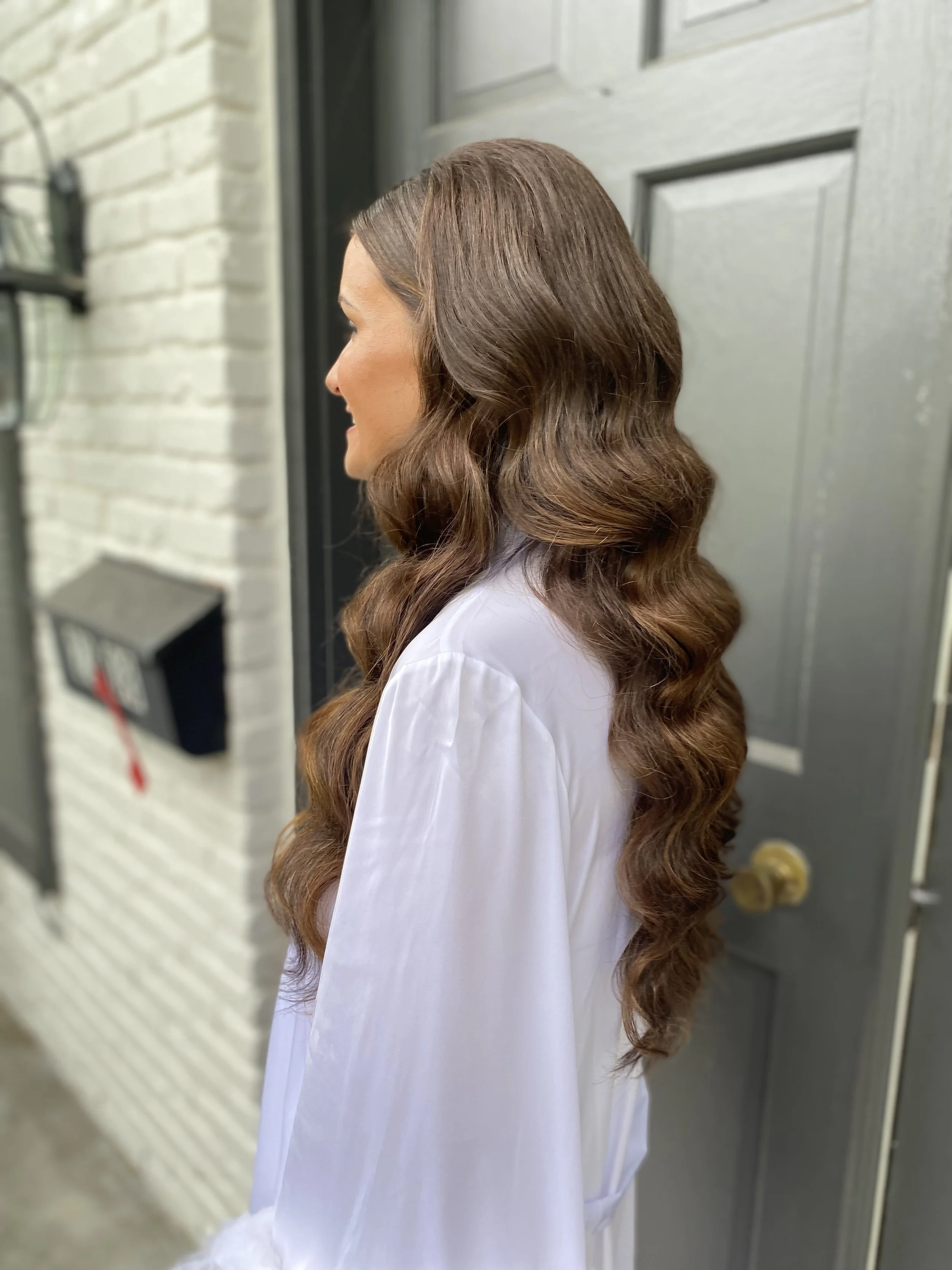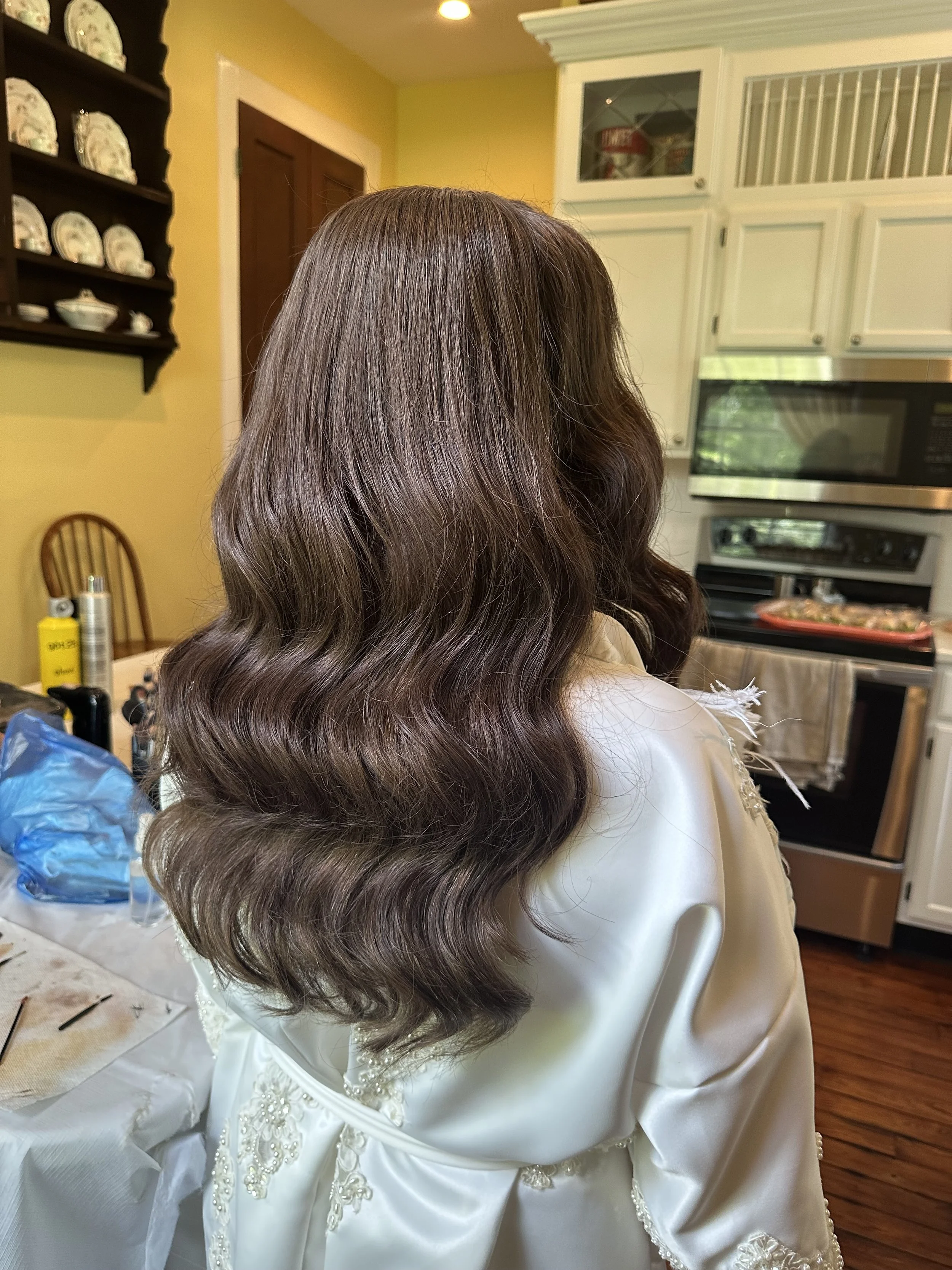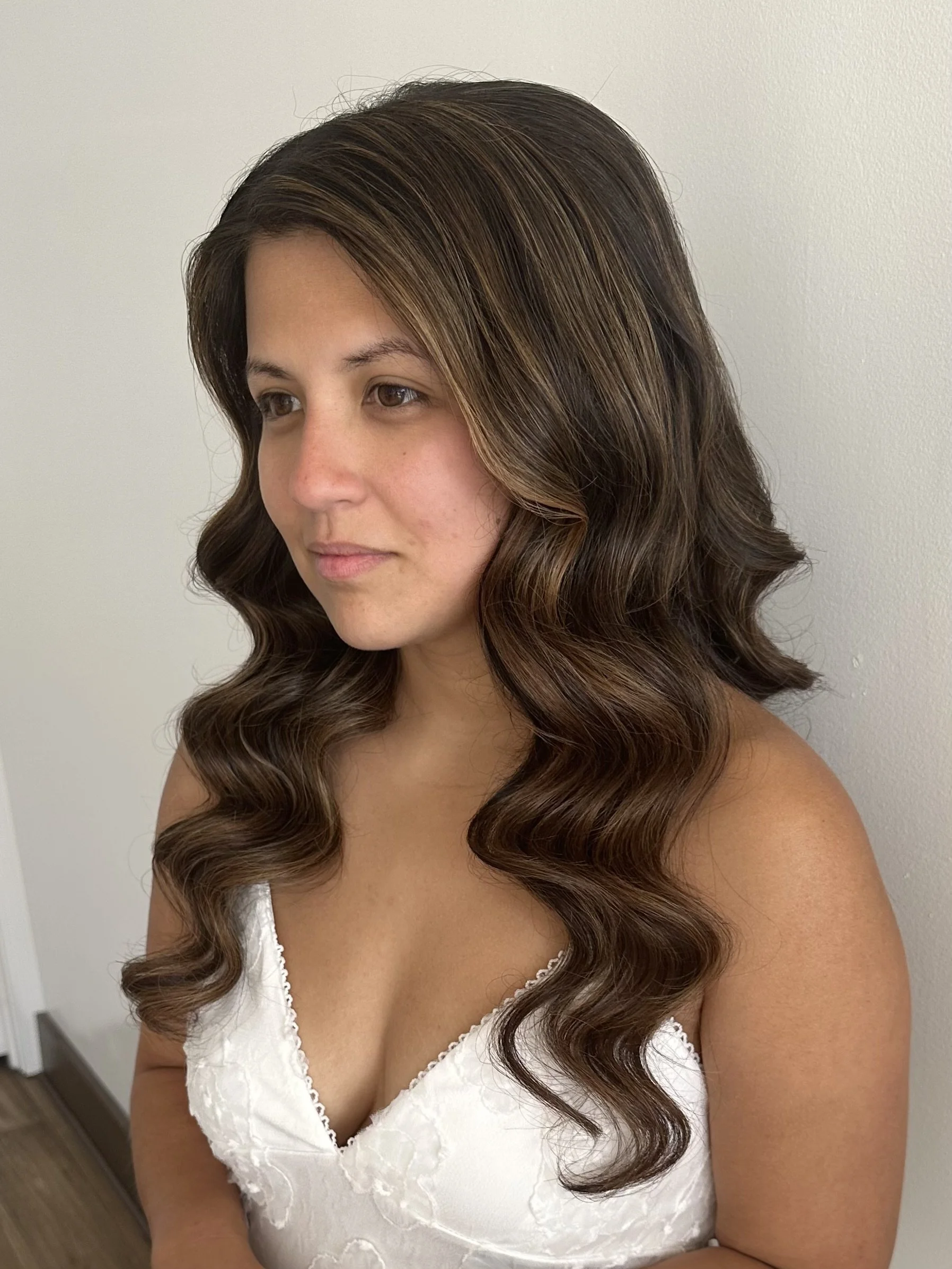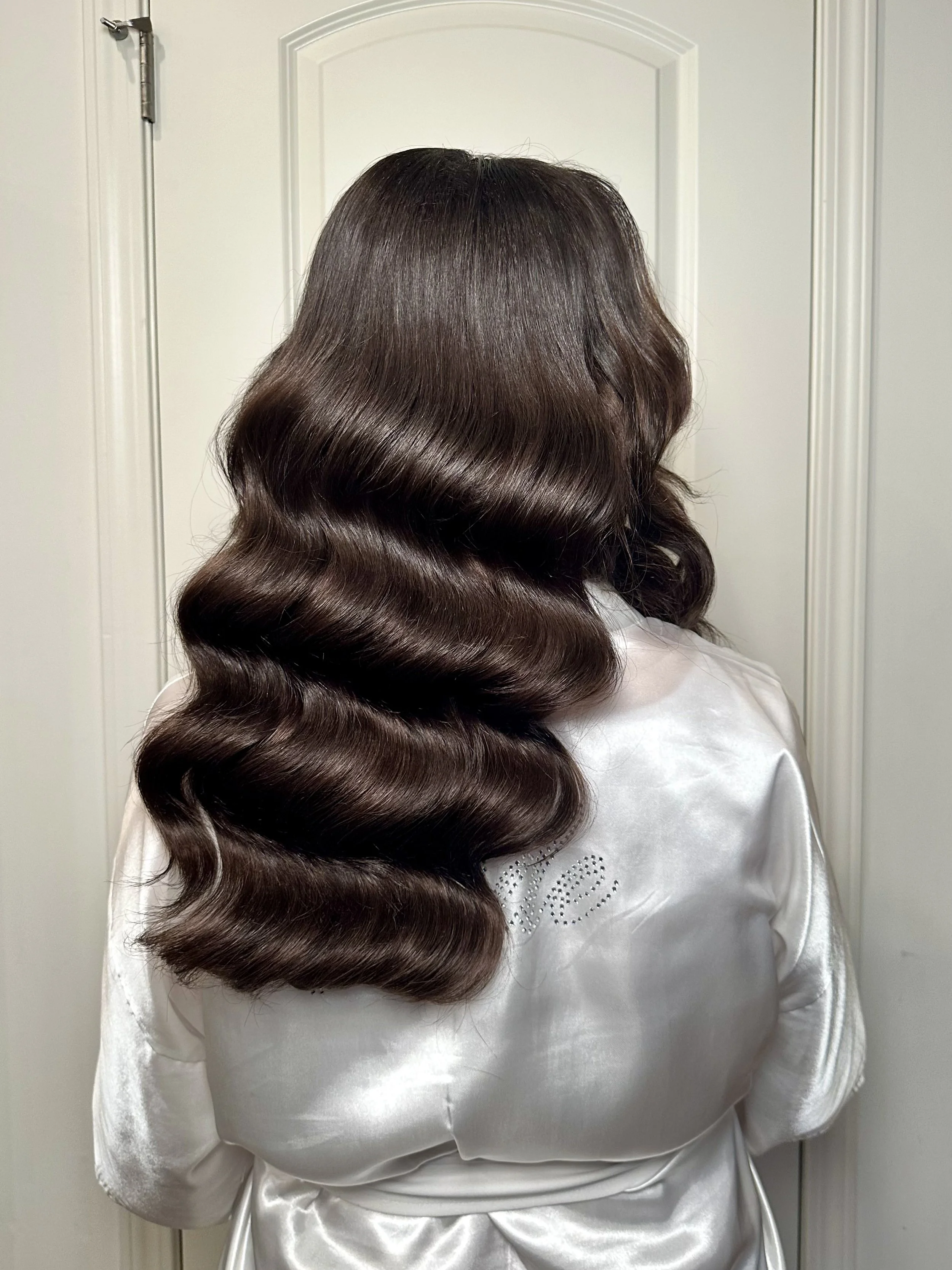 Glam waves are the epitome of timeless bridal beauty—soft, flowing, and effortlessly elegant. Perfect for the bride who wants a sophisticated yet romantic look, these waves frame the face beautifully and complement any gown style. On your wedding day, glam waves ensure you walk down the aisle feeling radiant, confident, and unforgettable.