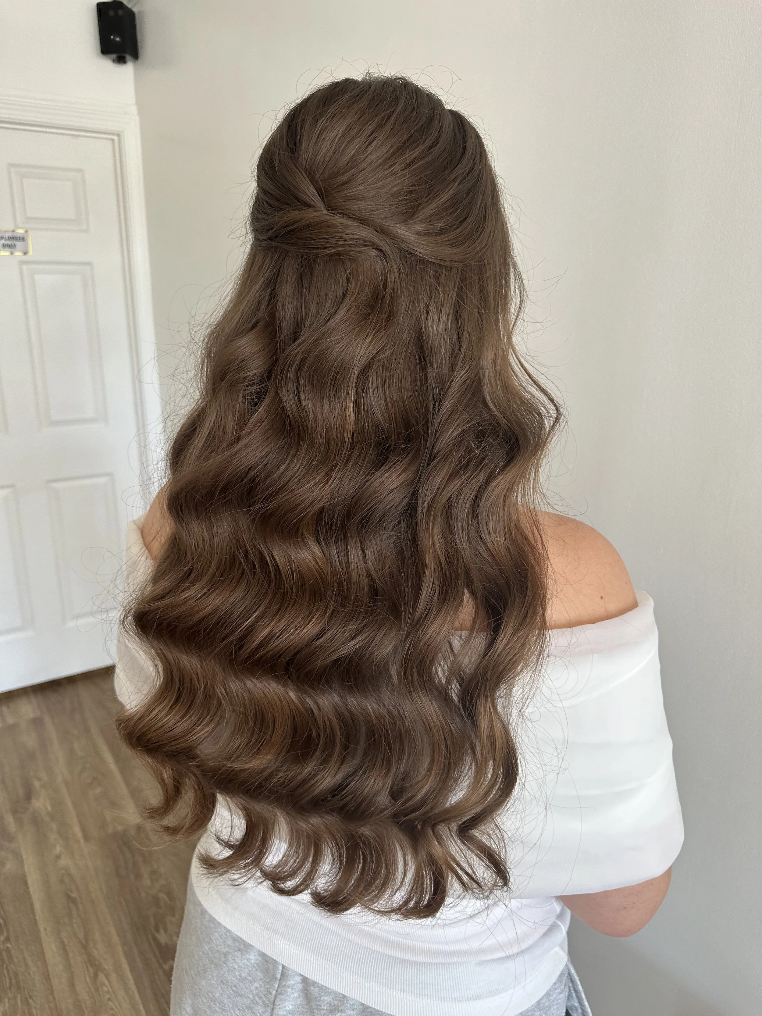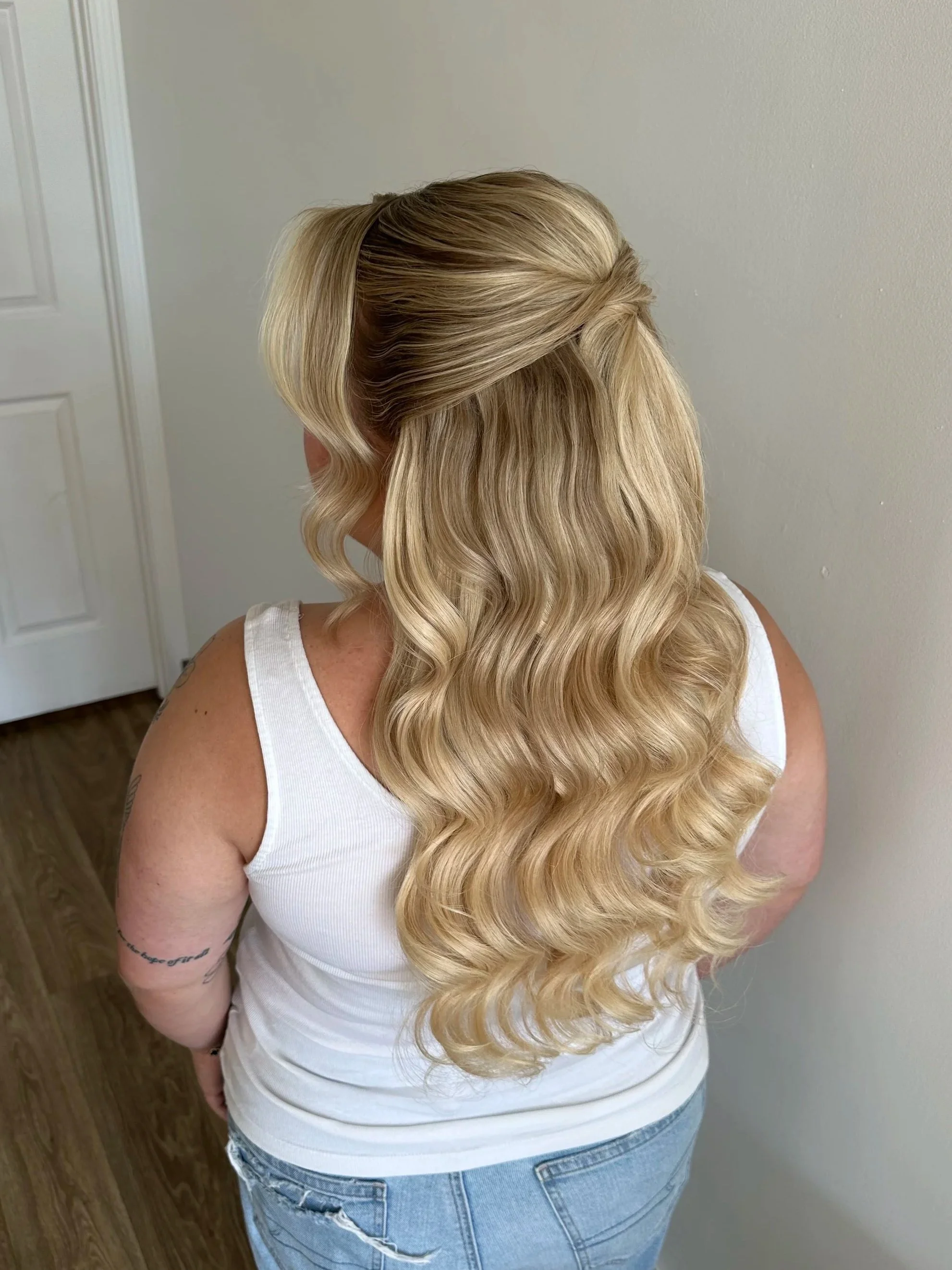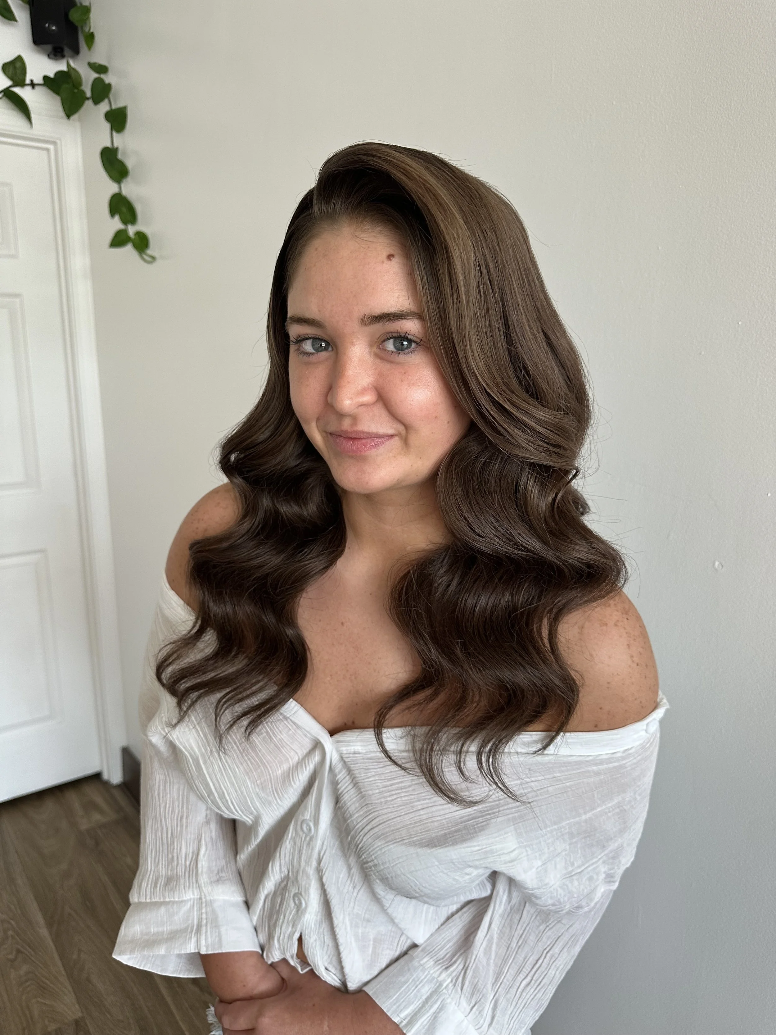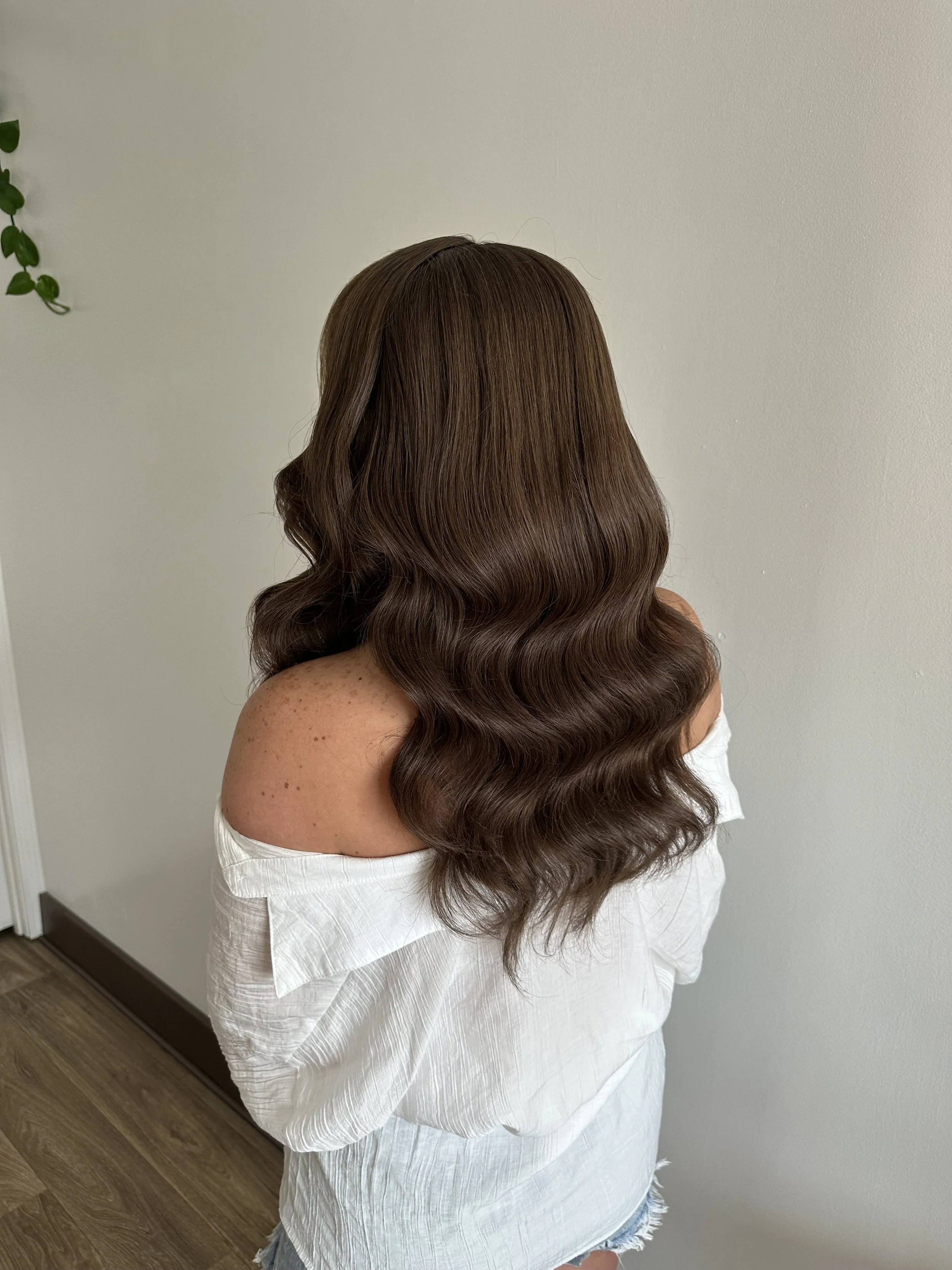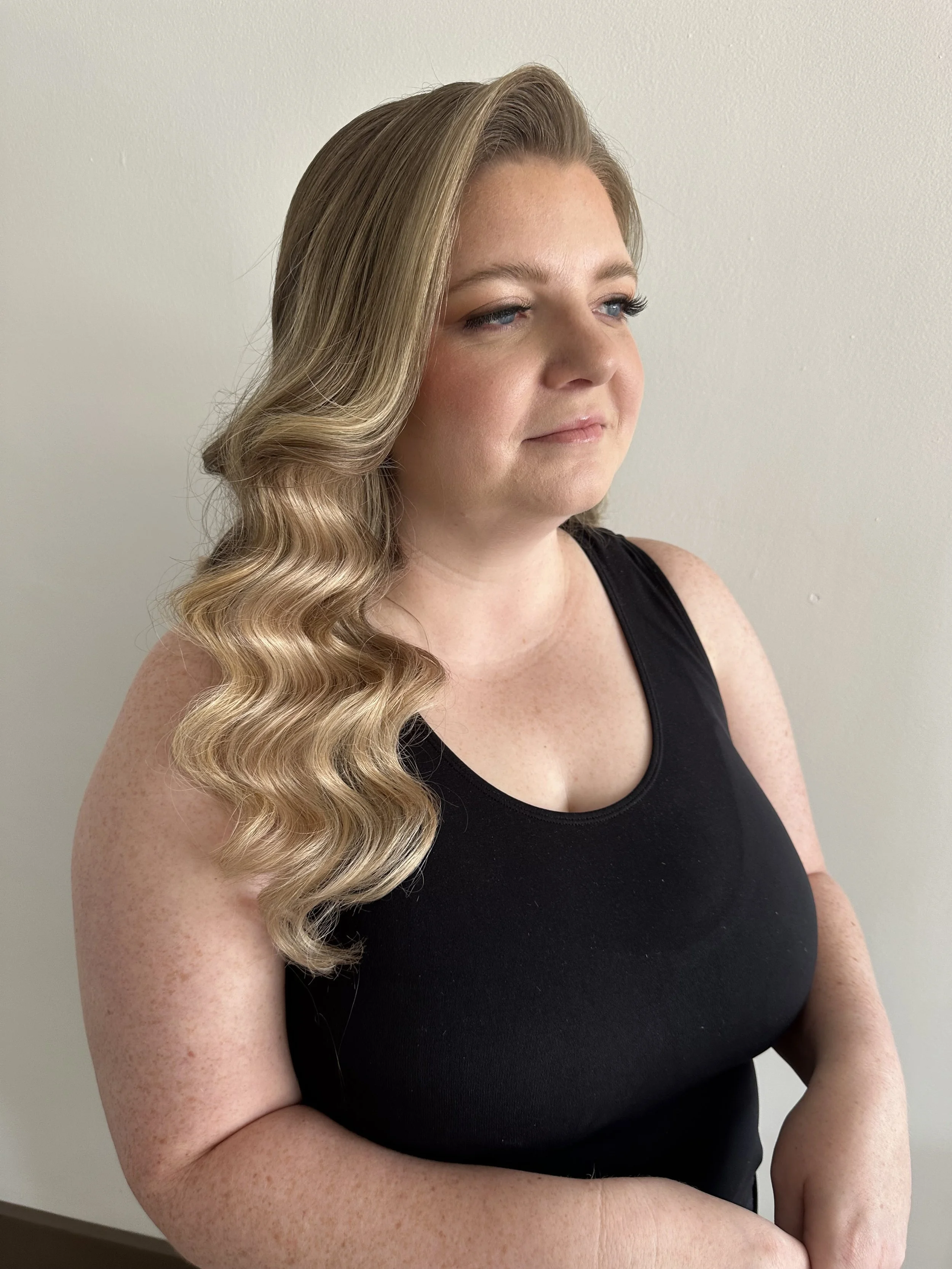 Glam waves are the epitome of timeless bridal beauty—soft, flowing, and effortlessly elegant. Perfect for the bride who wants a sophisticated yet romantic look, these waves frame the face beautifully and complement any gown style. On your wedding day, glam waves ensure you walk down the aisle feeling radiant, confident, and unforgettable.