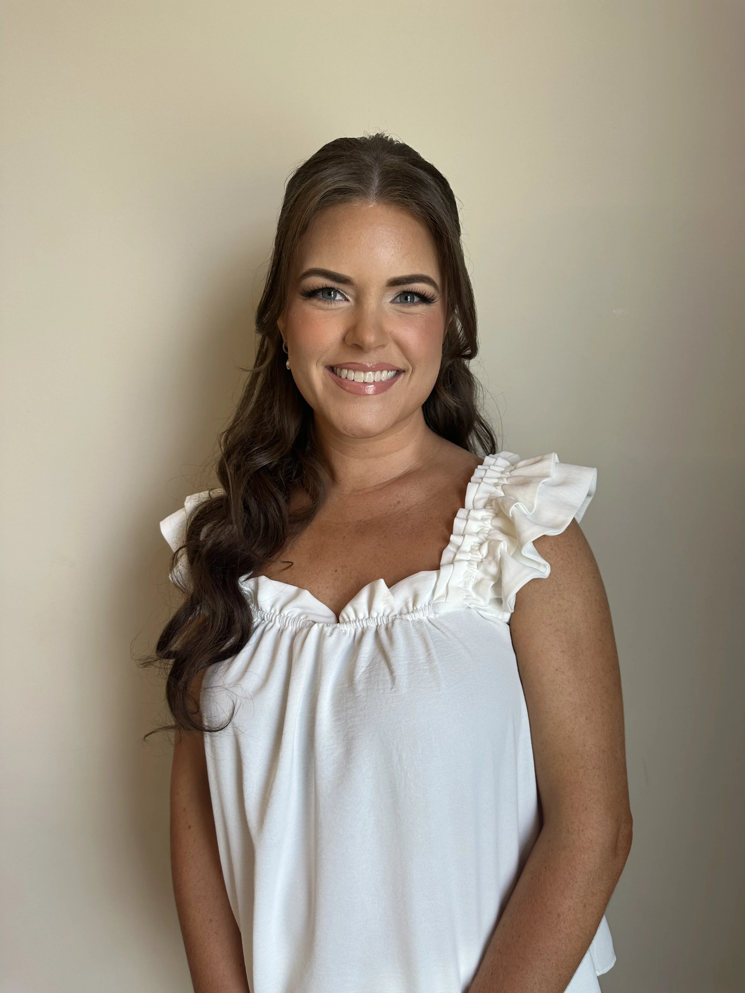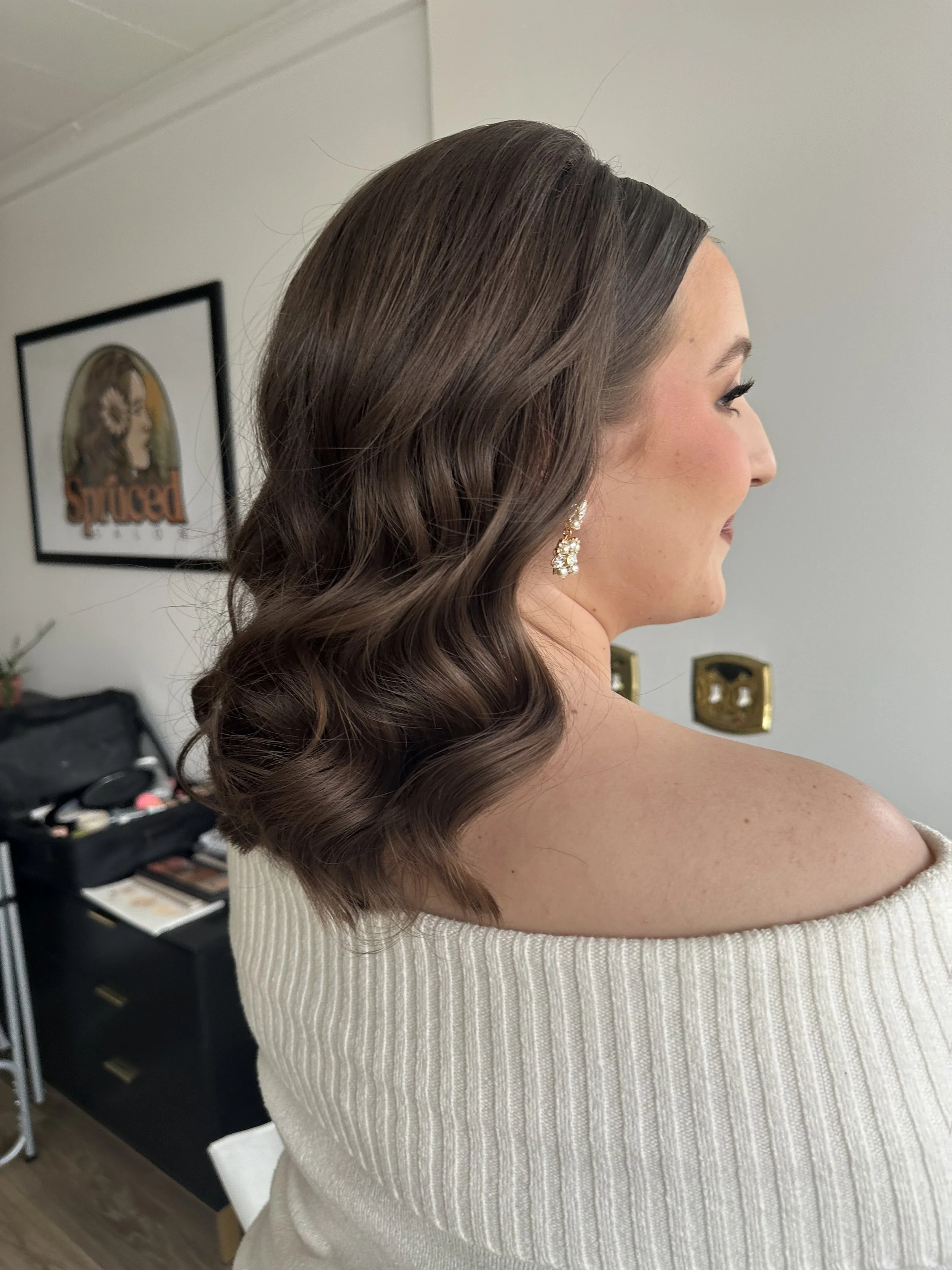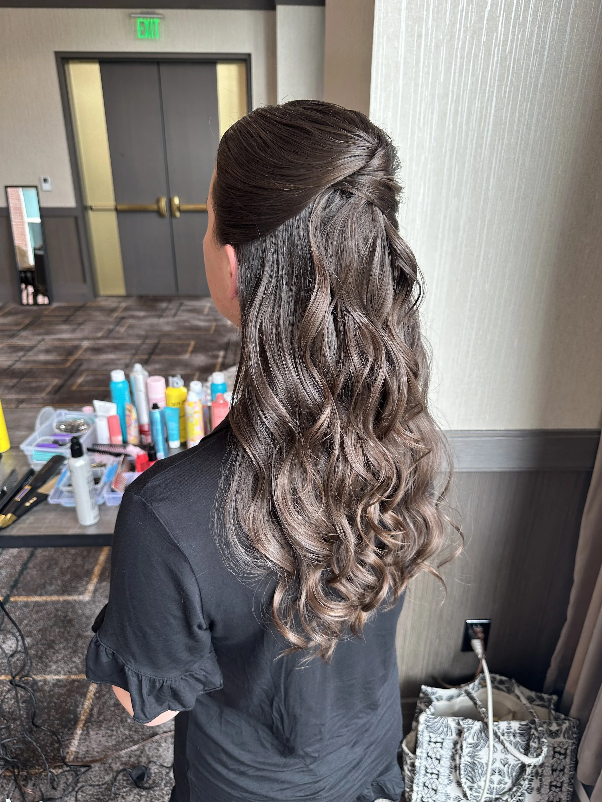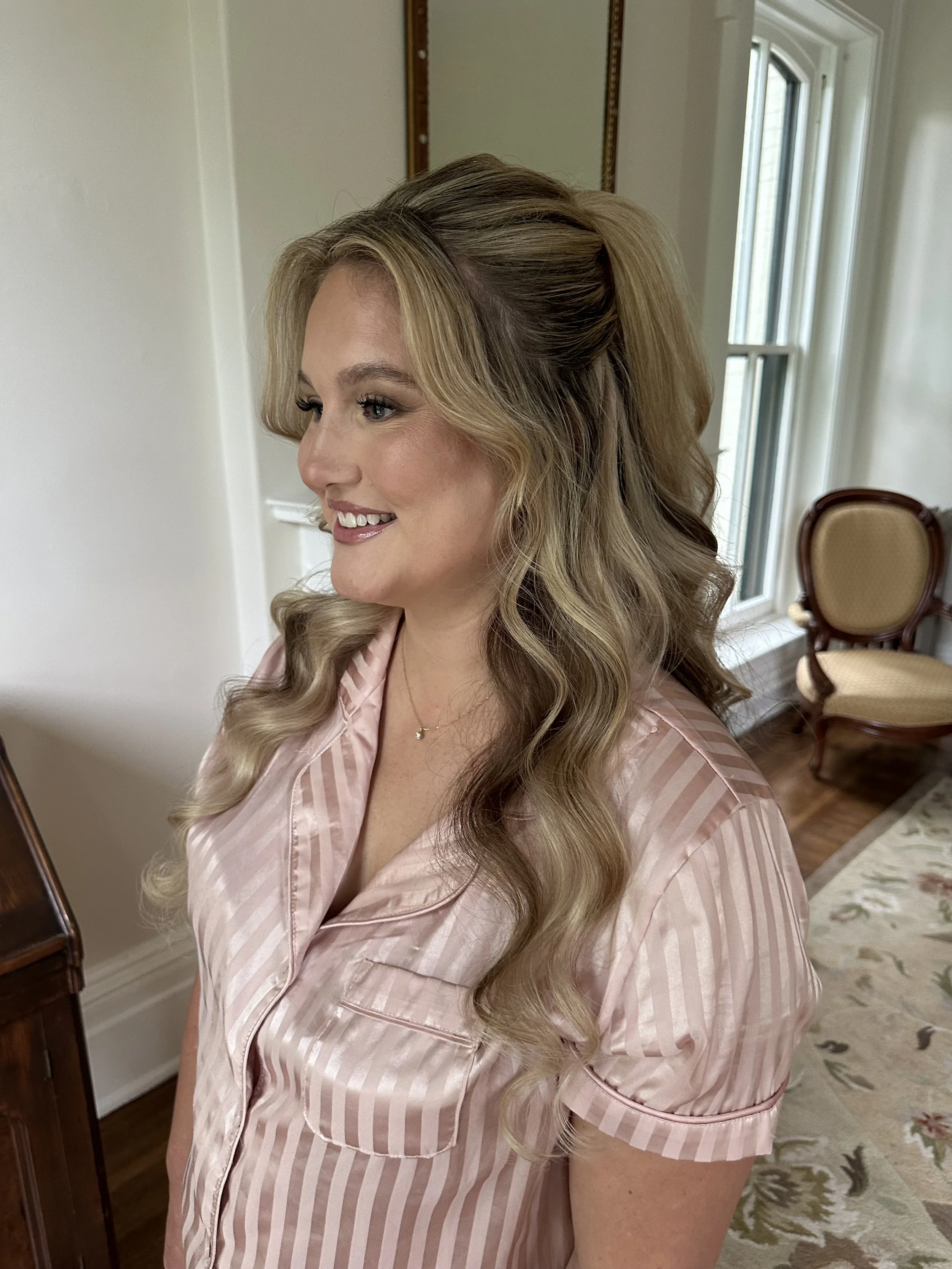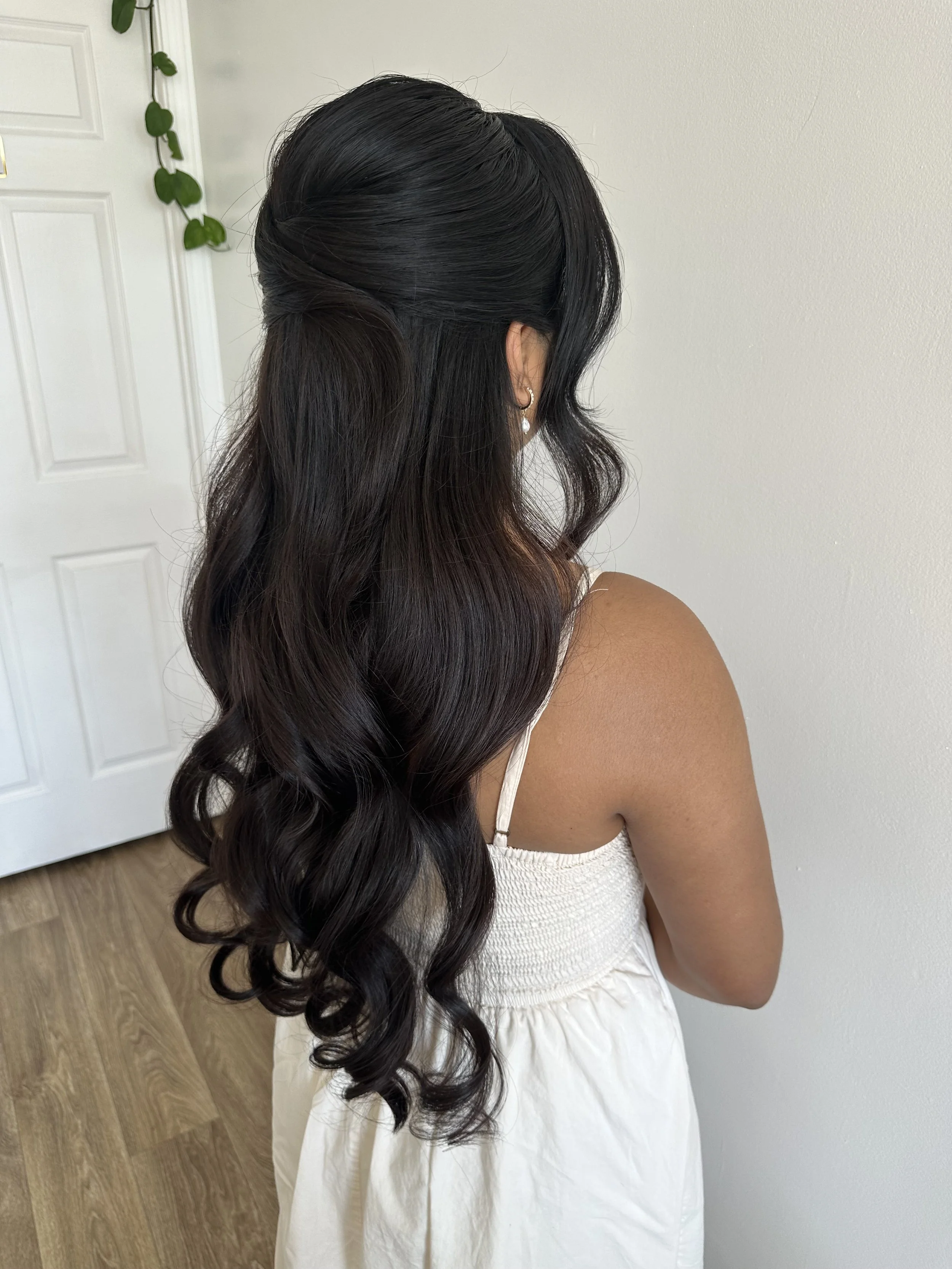 "The half-up, half-down style blends romance and elegance in perfect harmony. It keeps hair beautifully framed while allowing flowing locks to cascade naturally, creating a soft, feminine look. Ideal for brides who want the best of both worlds, this style complements veils, floral accents, or statement jewelry for a wedding day look that feels effortlessly enchanting.